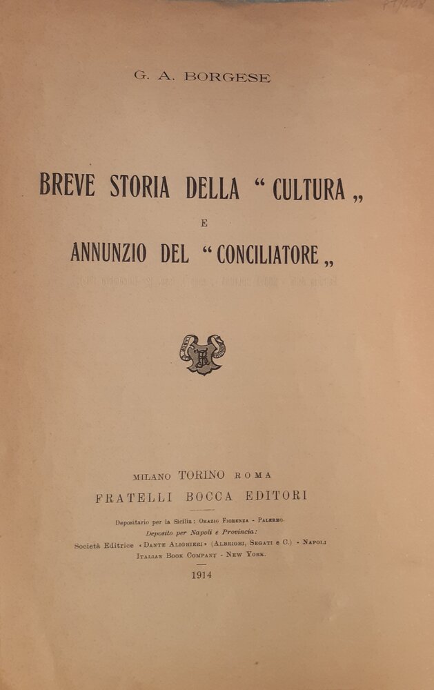 Breve storia delle cultura e Annuncio del Consiliatore, edizione Fratelli Bocca